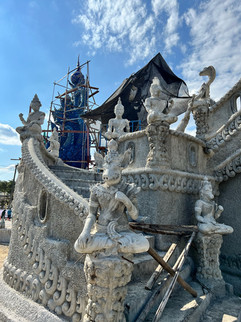 Once back in the van with John, I had to ask: "what the heck did we just see?!" John explained that Chalermchai Kositpipat was born and raised in Chiang Mai, but moved to Bangkok for his art career. After making it big, he returned to Chiang Rai and built the White temple as an offering to the king. This temple became his own representation of Buddhism and anytime he is inspired, he returns to the temple to add to his wall art (hence, the crazy Hollywood stars and movie characters that decorated the walls!)