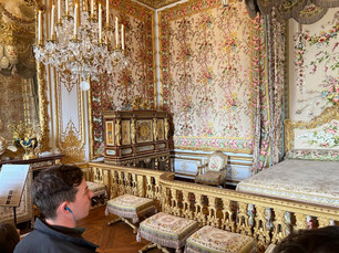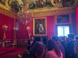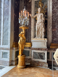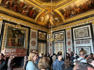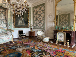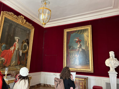 As we exited the Hall of Mirrors we continued to work our way through numerous apartments, including the apartment for the Queen of France, and galleries with portraits of Marquis de Lafayette and Jean-Baptiste de Rochambeau. You may recognize those names from Broadway's Hamilton since both Frenchmen were heavily involved in the American Revolution! For my fellow Hamilton-obsessed friends, here's some familiar lyrics about these guys: