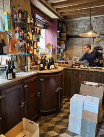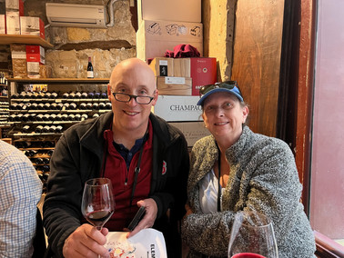Now, for the last scheduled event for the day: wine tasting at La Derniere Goutte. We were joined for our tasting by a lovely British couple and a neurologist from Chatanooga, TN. For the first hour or so, our "instructor" taught us about the different regions of France and how the climate in the regions affects the taste of the wine, as does the variety of the grape, and the type of soil at the vineyard.