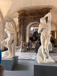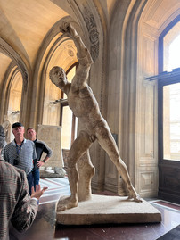 As our tour began to wind down, we made our way back to the ground floor where we ran across Michaelangelo's The Rebellious Slave (1513) and The Dying Slave (1515). Katie and I have seen four other Michaelangelo pieces: Madonna of Bruges (1503) in Brugges, Belgium, Pieta (1499) and the Sistine Chapel (1508-1512) in St. Peter's Basilica, Vatican, and Moses (1515) in Rome, Italy. Just call us art enthusiasts; Cindy would be impressed!