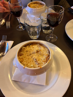 Mom and Katie each got a bowl of Onion Soup, Dad got the duck, and I had glazed pork ribs. We all shared a bottle of wine and frog legs (which legitimately did taste like chicken); Mom and Dad shared a creme brulee for dessert while Katie and I split a chocolate cake with a vanilla custard sauce. Definitely a great French meal!