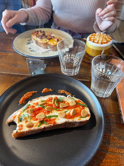After a morning of tastings, we grabbed lunch at Bunco Cafe, a tiny coffee shop, before heading home! This quaint place was located right on the water and, had the weather been better, would have made for a beautiful view! Instead, we sat dreaming of prettier days and warmer weather from inside with our coffee and toasts!