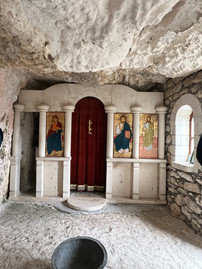 Our first stop of the day was at a Rock Monastery near the border. Records show this monastery has been around since 1431 and has housed at least one monk since that time. Built into the side of this mountainside, the monastery consists of two chapels and one Monk "apartment." While simple, this Monastery was a unique spot to visit and has a recent Orthodox church addition to the Monastery grounds that is still being painted as they raise the required funds.