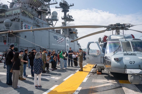 While Bryan and I spent these last few days holding our breath hoping everything goes well with booking our flights, we did get a break from it all when the USS America hosted a Friends and Family Cruise on Monday, May 22! I was beyond excited to join Bryan aboard his ship while it shifted to a different pier to prepare for deployment. Y'all, I actually go to "ride" Bryan's ship at sea (ok- just in the bay, but give me a little leeway!) It was so cool to see Bryan in action! I also didn't complain with one final day seeing all my spouse-friends who joined their husbands as well!
