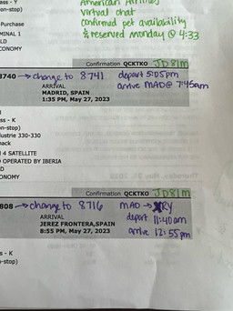 As one final hail Mary, Bryan called American Airlines and asked what it would cost to change the flight out of pocket. We were prepared to book our own flights from Miami to Jerez just to guarantee the correct flights with adequate layover times. At this point, money wasn't a factor- it was now or never to get these babies to Spain. The last email I sent to Bryan told him the flight is listed for $3,200 from Miami to Madrid to Jerez and to "just book it." So he called American Airlines and I (not very patiently or calmly) waited to hear what he found out.