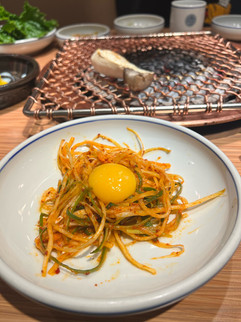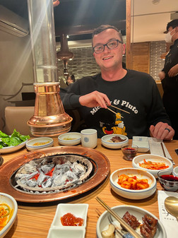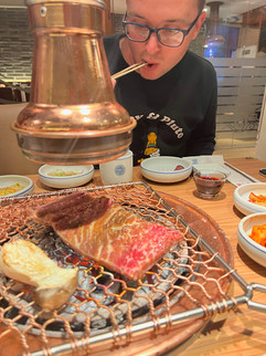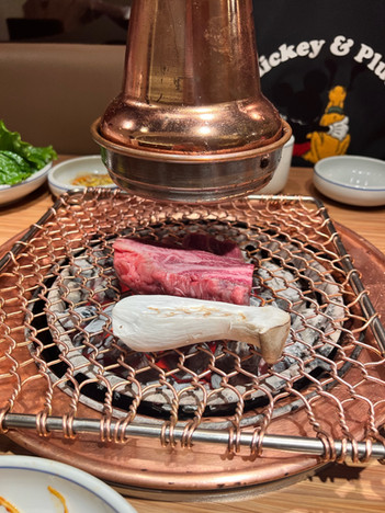 Our next stop was to find the world-famous Korean BBQ at Wangbijib in the Myeongdong district! Katie and I ordered a cut of sirloin and pork so we could get a little taste of both! We thought we had just ordered the meat, but they brought out a ton of food, most of which we didn't recognize.