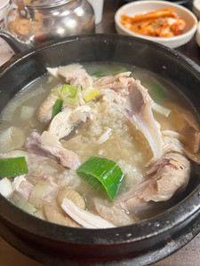 As we made our way down into the basement restaurant under a Starbucks, we realized this was definitely a local place. No tourists anywhere, and we received extra side glances from the entire Korean customer base. If we were looking for authentic Korean food, we got it. Luckily we had to order on a screen while waiting for a table, so with the help of Google translate, Katie ordered chicken soup while I ordered beef rib soup.