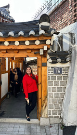 After a coffee to warm up our souls and lift our spirits, we made the trek over to Bukchon Hanok village, a beautiful 14th-century village on a hilltop filled with hanoks, traditional Korean homes. Katie and I were stunned at how well-preserved the homes were and how beautiful the views were; you could see our future destination, N Seoul Tower, so well! Katie was also really impressed with the brickwork and the doors, so she was sure to grab plenty of pictures!