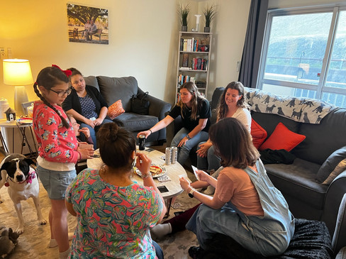 Feeling a little down during my walk to work one morning, I put together a group text with some of my closest girlfriends offering a Saturday Girl's Game Day at my house. Surprisingly, everyone was able to come and we spent the day laughing and snacking as we played several card games around my coffee table! Hugo and Reynolds were especially enamored with Sofia, Jenna's daughter, who gave them unlimited cuddles and love during her visit!