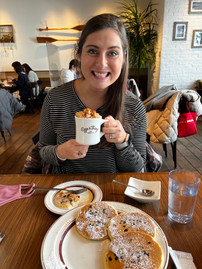 The food sure didn't disappoint! Bryan got a meat omelet with a side of buttermilk pancakes, while I devoured a plate of chocolate chip pancakes! Together we shared a caramel popcorn latte, which was covered in delicious caramel popcorn and dripping with caramel sauce!