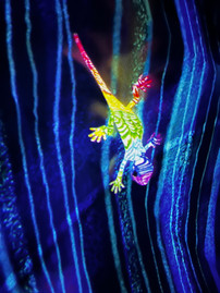 Another memorable room was the lily pad area, where you enter the room below water level, and can look up at the lily pads above you. As you walk through the room, you slowly rise up and end up "wading" through the pretend lily pad lake! While we were in this room, the exhibit changed from blues and greens to bright pink and red- completely altering the experience and really making the "borderless" concept come full circle!