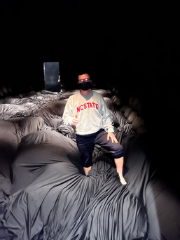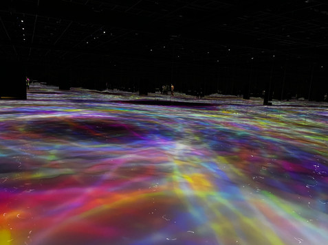 As we continued down another dark hallway, we were greeted by a staff member who told us to roll our pants up to our knees for the next room. As we rounded the corner, we entered a large, warm lake filled with colorful koi fish projected on the water's surface. This was the coolest room!!!! As you moved around the water, the fish moved to avoid crossing paths with you! Eventually, all the koi fish collided together and created a light show on the water's surface before morphing back into their koi bodies. It's hard to describe the room and its contents- I guess it's just one of those things you have to experience to understand!