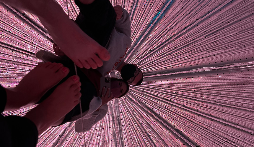 After our ears popped during our descent back to the ground, we headed out of the Tokyo Skytree Tower and made our way back to the train station! After a 45-minute train ride, we arrived at our final big event of the day, TeamLab Planets!