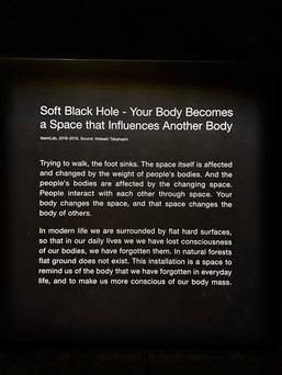 I know you are probably shocked to read this but this was the best TeamLab experience to date. We both agree that TeamLab Planets is #1 because of the sensory exhibits. As we walked in, we were told to take our shoes and socks off and leave them in the lockers, as this exhibit was water-focused and we would be getting wet. As we entered the first exhibit, we had to walk upstream on a ramp, as a river of water flowed down from an indoor waterfall. Around the corner, we sunk into a room-sized beanbag, that we had to work our way across. I later read that the dark room filled with bean-bag beads was meant to remind participants of their bodies and to mimic the idea of groundlessness.