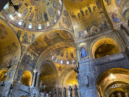 Inside the basilica, we were treated to beautiful mosaic tiles covered in gold leaf, similar to the tiles we saw in Istanbul within the Hagia Sofia. This would make sense because both Cathedrals were built by the Byzantines during the height of their empire! Although contested by some, it is largely believed that the remains of the Apostle Mark are held within the basilica; it's cool that we are standing in the presence of the remains of a man who walked and talked with Jesus!