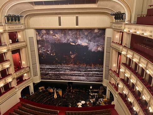 Now, for the grand event for the evening: in true Viennese fashion, Katie and I bought tickets to see Le Grand Macabre, an opera making its premier at the Vienna State Opera. Katie and I were excited for two reasons: A) we love theater productions and B) the opera scenes from Mission Impossible: Rogue Nation were filmed at the opera house! This will be Katie and I's first opera, so we had no idea what to expect. We got there early to take in the stunning architecture and design of the building before going to our seats.