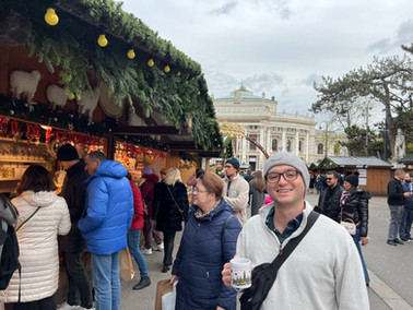 After the Bratislava bus debacle, Katie and I finally made it to the Vienna Bus Center where we then decided to just Uber to our hotel! As we approached our hotel, we were greeted by large crowds, beautiful Christmas lights, and tons of stalls selling Christmas trinkets! We were exhausted and couldn't wait to hit the hay, but it made us excited for what was in store for us all day tomorrow!
